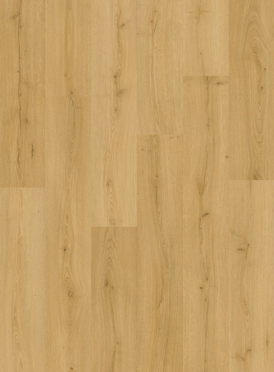 • Vinyylilattia Quick Step Bloom Brushed Oak Honey, lämmin hunajainen tammen sävy ja harjattu tammikuviointi.